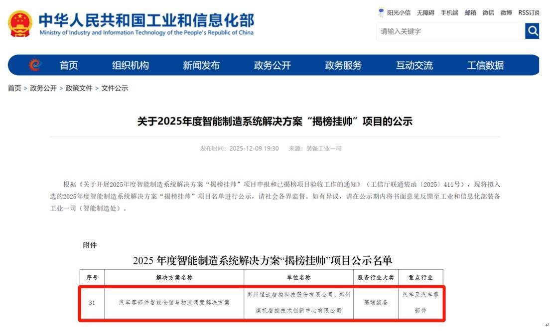 【大河财立方 记者 张战强】近日厦门配资平台,工业和信息化部公示2025年度智能制造系统解决方案“揭榜挂帅”项目名单。中创智领集团旗下工业智能板块核心企业——郑州恒达智控科技股份有限公司的“汽车零部件智能仓储与物流调度解决方案”入选。大河财立方记者了解到,该项目是河南省入选该领域榜单的唯一代表。